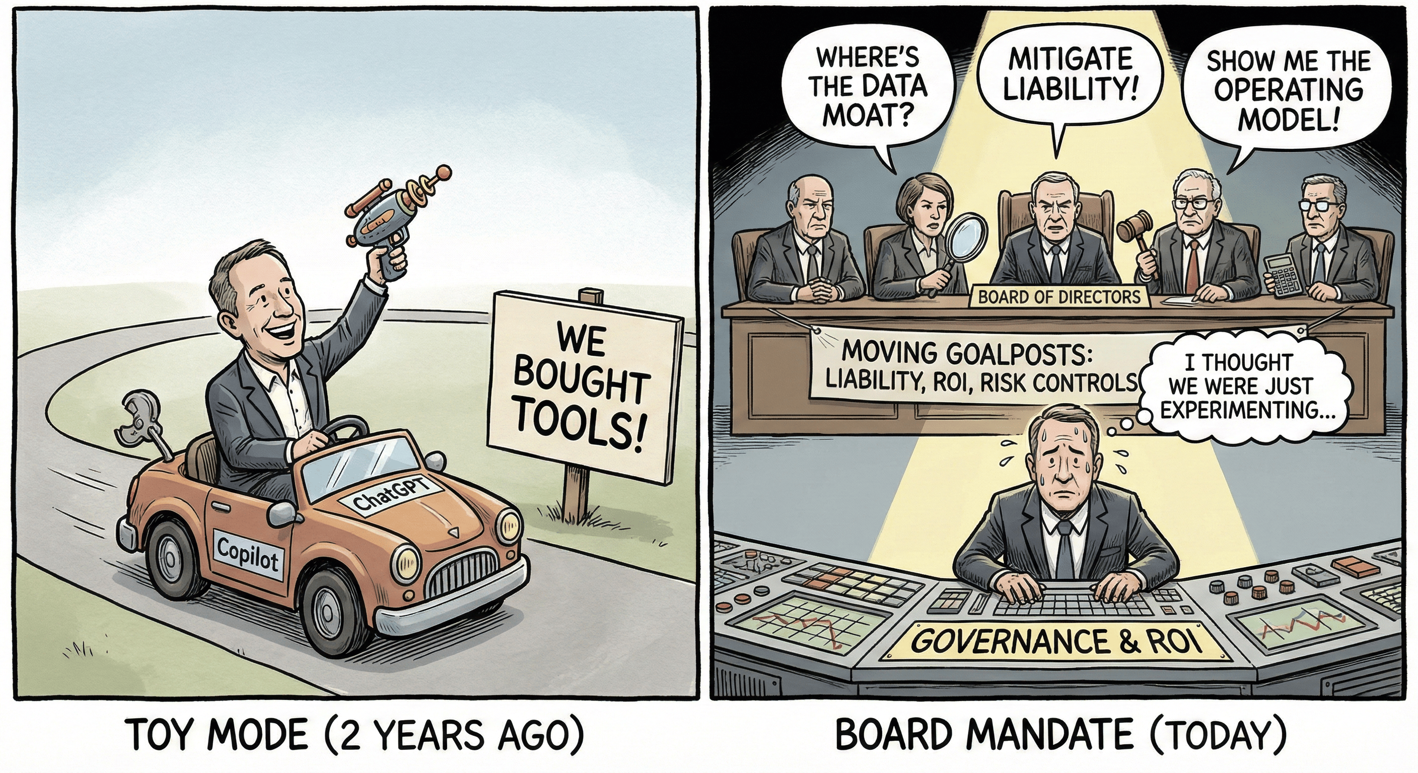 This answer is a red flag. It tells the Board you are in "Toy Mode." Boards know that 95% of AI pilots fail to scale because they lack operational discipline. They don't want to hear about experimentation; they want to hear about asset allocation, risk controls, and competitive moats.